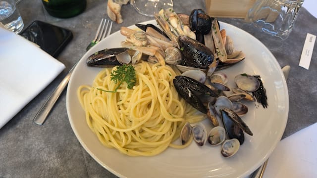 10/10Great welcome, on a friendly yet professional manner. Excellent food and wine. The skid palette was beautiful, tasty and filling. The pasta con vongole were perfect. We highly recommend this place.