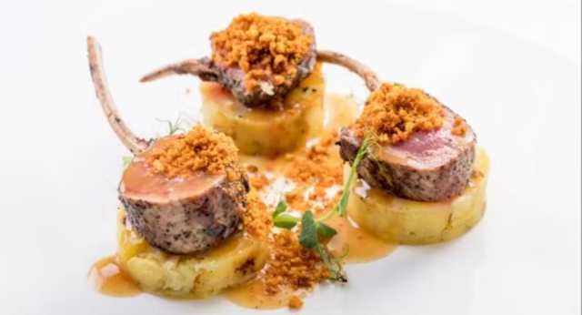 - Kebab aperto di anatra e agnello, salsa di yogurt e salsa di peperone leggermente piccante