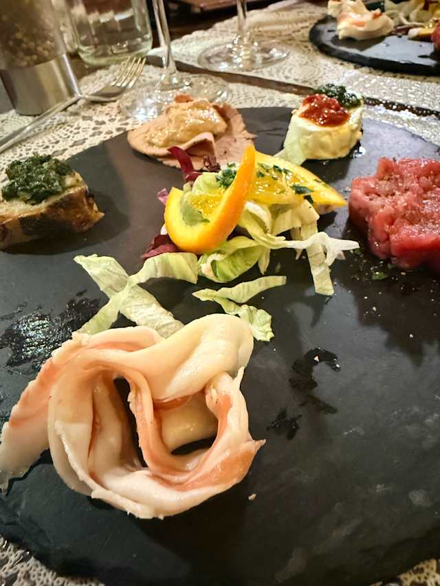 9.5/10We had lunch on the day of tha Gran Balon open market so it was very busy luckily we made reservations. Very good antipasti and the fresh pasta was delicious!! We had tagliolini al ragù e Plin. They were wonderful! Then we had tagliata and roasted potatoes which were also quite good. All the portions were generous! The service was a bit disorganised because they were very busy but we had time and it was a nice leisurely lunch. Very quaint interior with eclectic decor seemingly coming from the antique market. We will be back!
