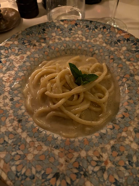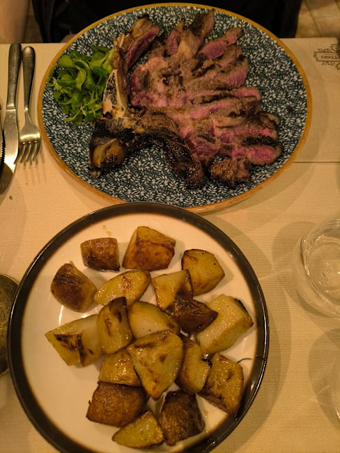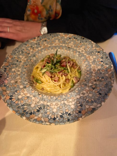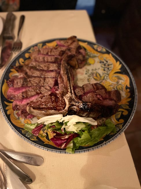 10/10My wife and I wanted a non-fussy meal after having eaten recently at a high-end Michelin restaurant. This restaurant was perfect. We had the chicken liver toast and tomato bruschetta to start and they were delicious. Then we had two different pastas; she had spaghetti carbonara and I had mushroom risotto. Both were spectacular! (Please note that the portions here are large.) We ordered a Florentine steak to share and ended up taking some home in a box along with some sautéed spinach. The steak and spinach were fantastic! We did not have room for dessert. The service was friendly and efficient and the restaurant has a relaxed, welcoming vibe. The restaurant quickly filled up shortly after we arrived at 7:30 so be sure to reserve a table in advance. We highly recommend this restaurant.