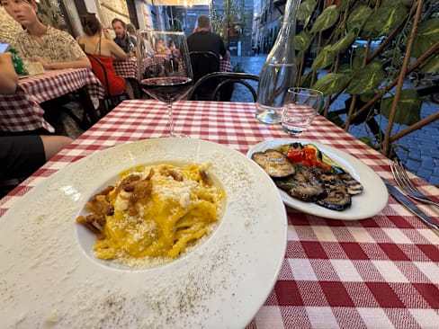 10/10Not just the food, the experience! Luigi was our waiter and he created a meal plan for our table that everyone enjoyed! The oxtails and eggplant Parmesan were excellent and fantastic! Warm and wonderful restaurant! Will eat here for sure when we come back to Rome! Also, very reasonable prices for excellent food.