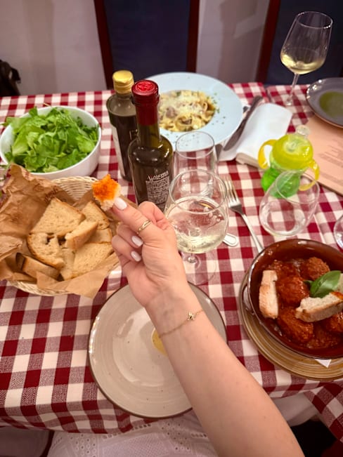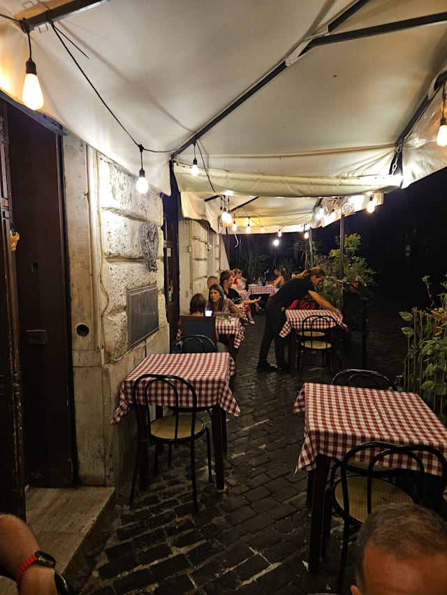 10/10Our family visited Antico Carbone last night for dinner. We were able to make a reservation online. This is a lovely family owned restaurant. The manager stopped by our table several times to ensure we were enjoying our meal. Outside seating was full so we sat inside. The restaurant has air conditioning which was welcome after walking thru Rome all day. The meatball appetizer, Pasta Bolognese and Carbonara were Excellent! After enjoying a relaxing meal we were given complementary pistachio aperitifs and almond cookies. The cookies were so delicious we asked for, and received more. Highly recommend stopping by Antico Carbone when you are in the Trastevere area!