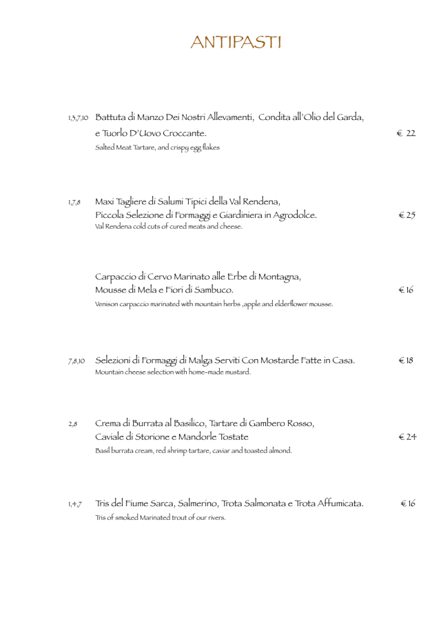 9.5/10Very nice place with well constructed menu giving a good sense of italian and continental cuisine. Product quality and the preparation are on the very high level as well as the service. The wine card is broad and if one decides to have at least a bottle there is a choice to accompany every possible dish available. Very well spent evening. Will come back when I am back in Val di Sole.