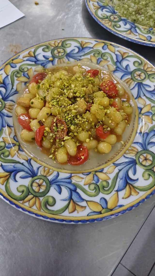 - Gnocchetti crema di melanzara, pesce spada e granella di pistacchio