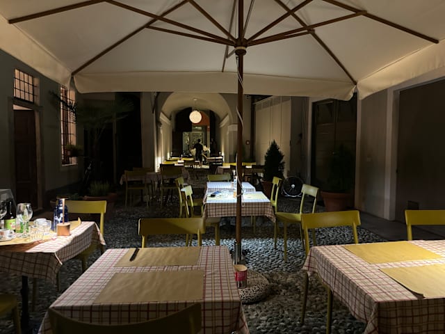 10/10Charming trattoria with a courtyard for al fresco dining. The food was delicious, especially the pluma iberica and the risotto. Great Piedmontese fare.