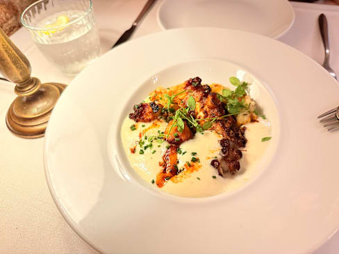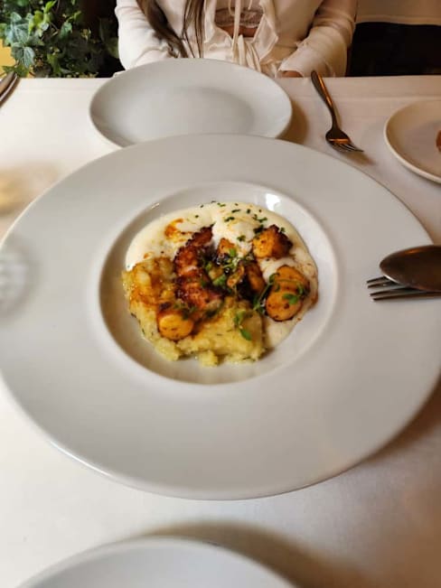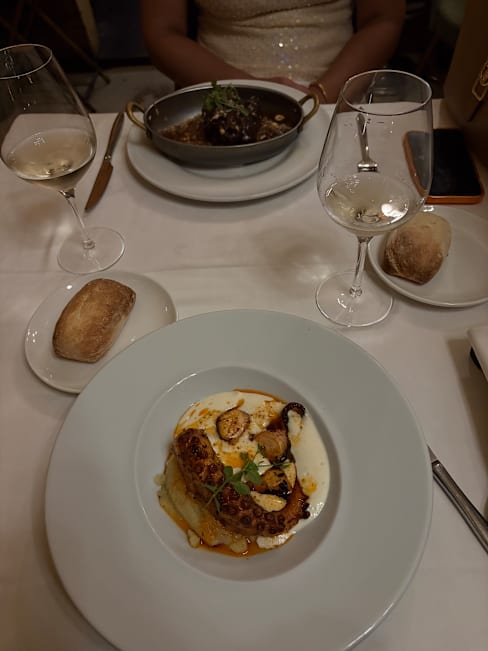 7.5/10Loved the starters!! The octopus is very crispy and flavourful. The main was nice, I wish it was a bit more flavourful, however the meat was soo soft!! The service was not the best, waiters look like they don’t want to be there and ignored us for a while when we went in. This was our second time there and I’d definitely recommend for food but the service is always a let down :( Few gluten free choices available!