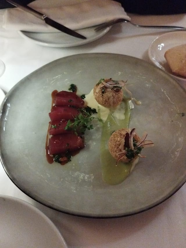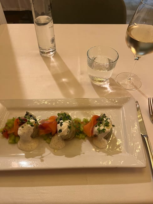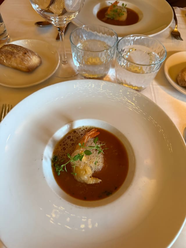 9.5/10We had a wonderful table for two and the meal was excellent. Melon carpaccio, pleurotes, followed by delicious Hake and Shrimp main.