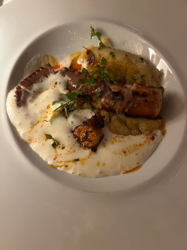 7.5/10Loved the starters!! The octopus is very crispy and flavourful. The main was nice, I wish it was a bit more flavourful, however the meat was soo soft!! The service was not the best, waiters look like they don’t want to be there and ignored us for a while when we went in. This was our second time there and I’d definitely recommend for food but the service is always a let down :( Few gluten free choices available!