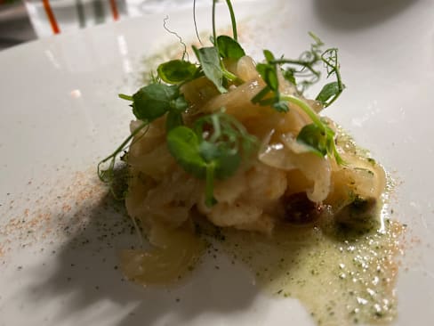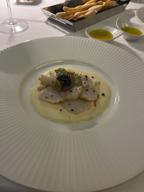 10/10Very good nice and elegant service, plus very good recommendations from sommelier. Courses are delicious and very charming plating. Ambience sterile but attractive