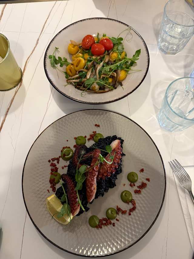 9.5/10The food was excellent and the drinks perfect. We enjoyed the polenta sticks and cod. My kids got the paella and my husband got the octopus. For dessert the crumble and the basque chocolate cheesecake. Everything was really good.
