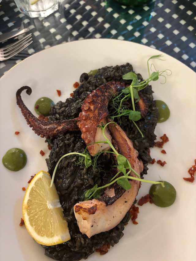 7.5/10My change of booking had not been registered despite being assured on phone it was done. So I arrived to be told I was late and they'd given my table away. I then sat upstairs. Starter and dessert choices did not inspire me but the risotto was very good.