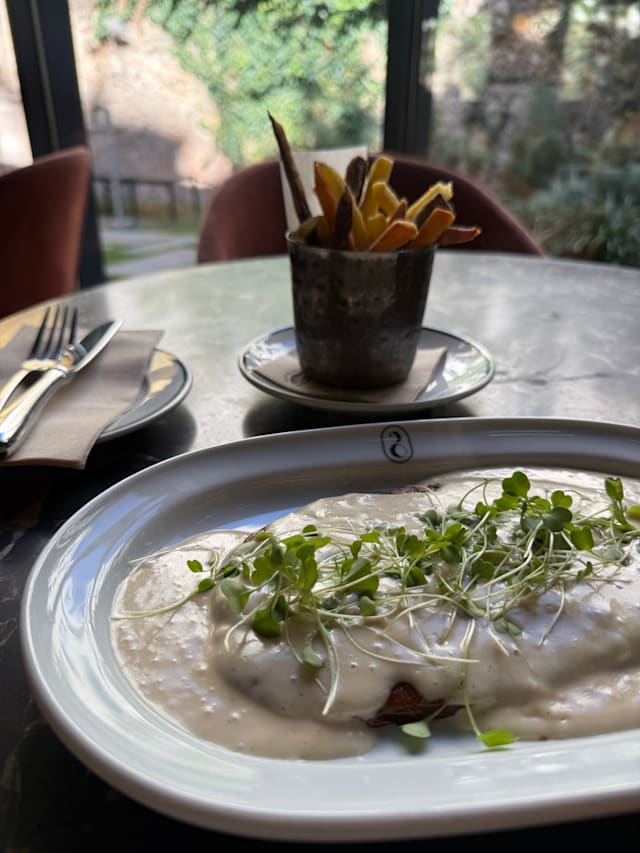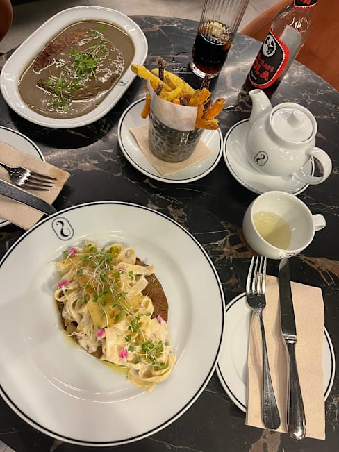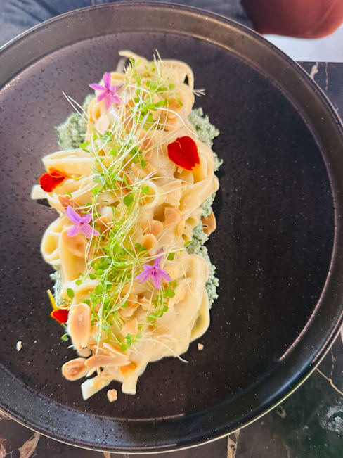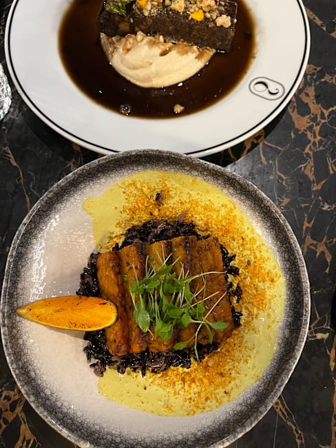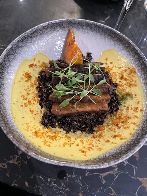 9/10The Restaurant is very pretty, food is nicely plated. We got the jackfruit tartar for appetizer and it was amazing. For the mains we felt the main protein could have a bit more flavor (mushroom terrine and lentil tempeh). Staff is nice!