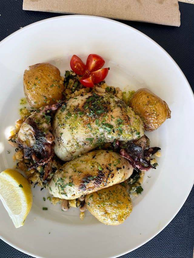 8.5/10Food was delicious. Wish we could speak Portuguese because we are often not certain about what we are ordering but part of the experience is trying something new. Perfectly cooked fish and rice and tabbouleh accompaniments were delicious. Staff very friendly.
