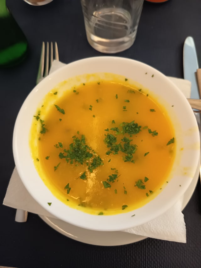 9/10nice restaurant in a beautiful location facing the bay.Tasty food and good portions sizes. staff were friendly,we were given free port after our meal.