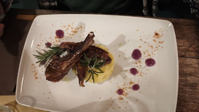 Costine di maiale aromatizzate alle erbe e patata schiacciata