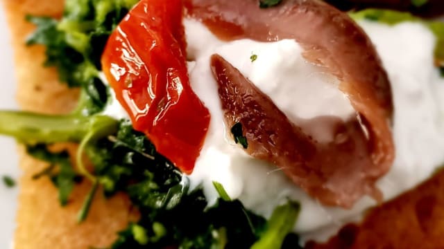 BRUSCHETTA CIME DI RAPA BURRATA E POMODORI CONFIT
