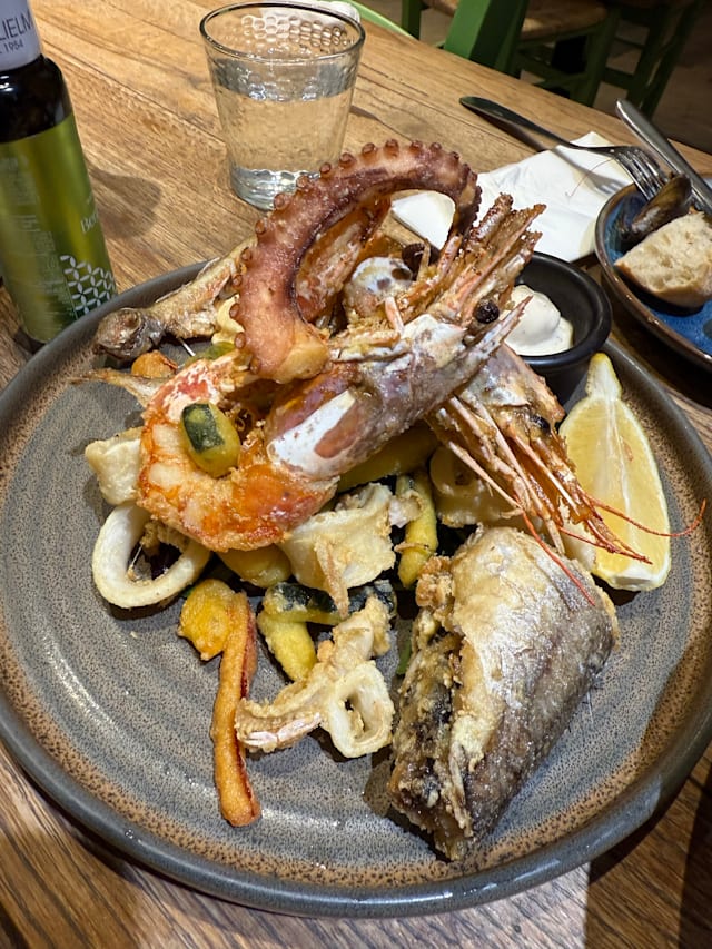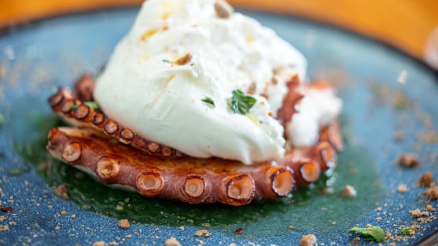7/10Chapeau to Apuliabistro. Foodman came in with entourage after an overnight night flight and Apulia was the tonic we need. Casual tone in a rustic exposed stone and wood room. Service from Madam the Owner was welcoming and genuine. We enjoyed some terrific reds with Sicilian grapes we don’t often see at her recommendation. Pace of the meal was so well timed as we had a lot to talk about with old friends. We started with a variety of appetizers for the table. The one on the squid ink focaccia is the one dish I will remember from the whole ten day trip. Funny how simplicity is so satisfying. I had the pulpo, which was cooked perfectly. The desserts were a sweet complement followed by so riffs on Lemoncello with melon and pistachio. Chef came out to applause at the end. Well worth the walk to there which was ~ 4 min from the busy section and completely with the walk. Enjoy!