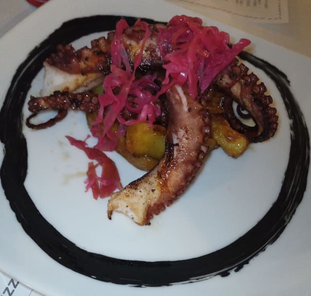 Grilled octopus with cherry tomatoes and rocket