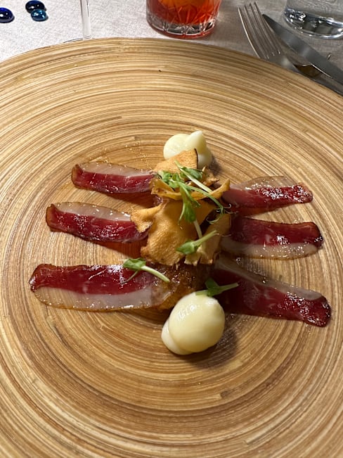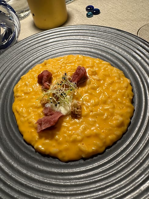 9.5/10+3Very delicate modern fish menu, “Brezza Di Mare”. 5 courses on paper, but in reality 8 courses. Super menu. 74 EUR, Wine pairing 29 EUR (3 glasses)