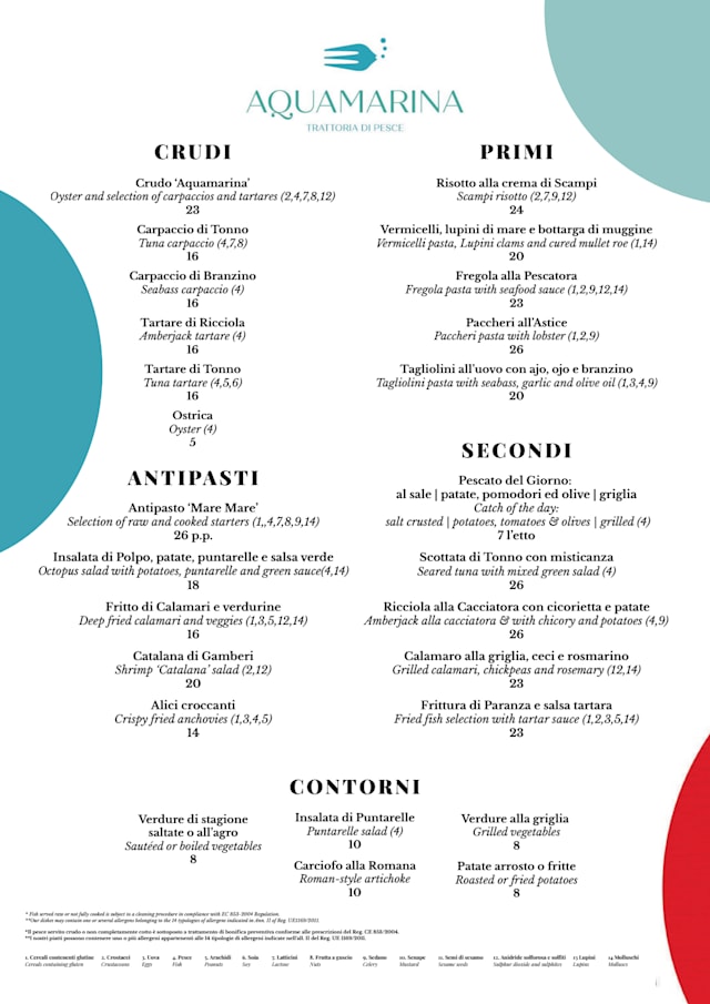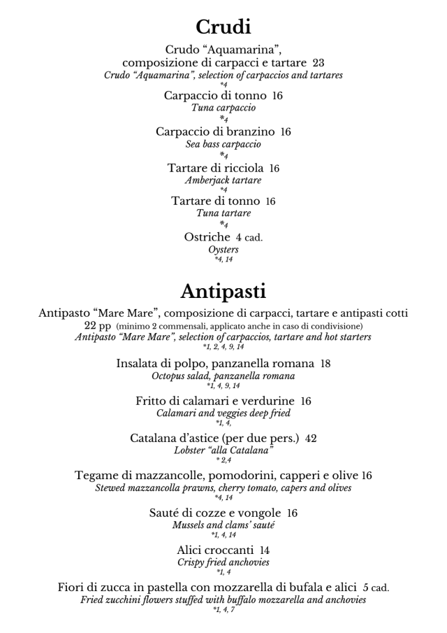 10/10My wife and I are visiting Rome for our spring break. We just had an incredibly delicious dinner at Aquamarina. Its assorted seafood carpaccio and tartare was outstanding. We shared the whole grilled turbot, which was also extraordinary. We are serious seafood lovers from Boston. I’m a Japanese guy. For us, Aquamarina is the best seafood restaurant on the planet!!! Our server Martino was extremely attentive too. We will return in 3 days to celebrate my birthday!