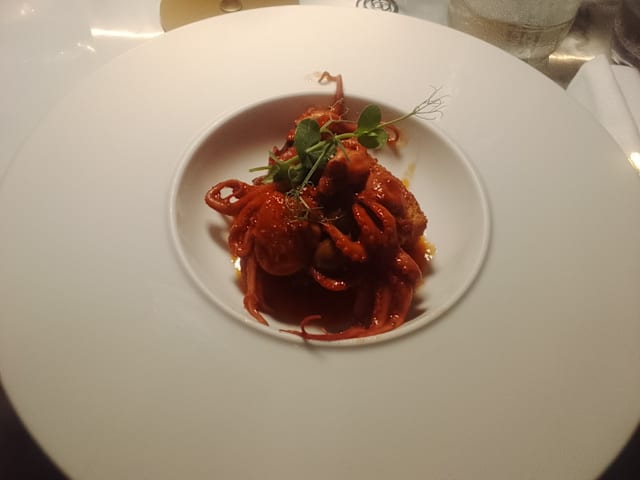 8.5/10Food and the service (in particular) were good. Very good recommendation for the wine. The fish seemed to be very fresh. Only the presence of small children at 9 pm (they were tired and the parents took not care of them) so they were grumpy was disturbing considering the bill we payed. A bit difficult to find but this is of minor nature. We recommend this to everyone who loves fresh fish.