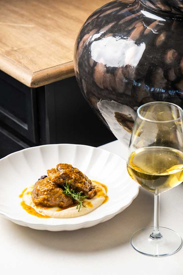 - Guancia di maiale con purè di patate al tartufo e il suo fondo