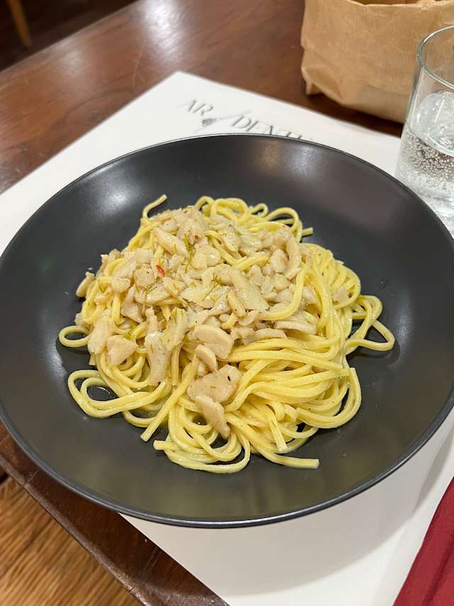 - Tagliolino con boccalone, pomodori pachino e zest di lime