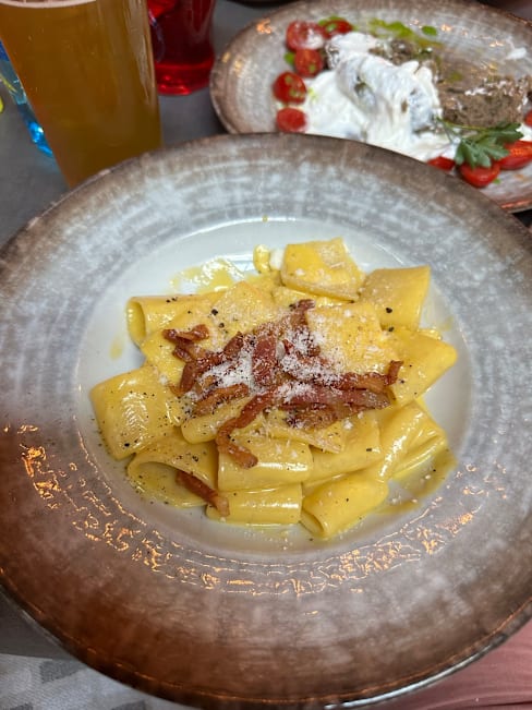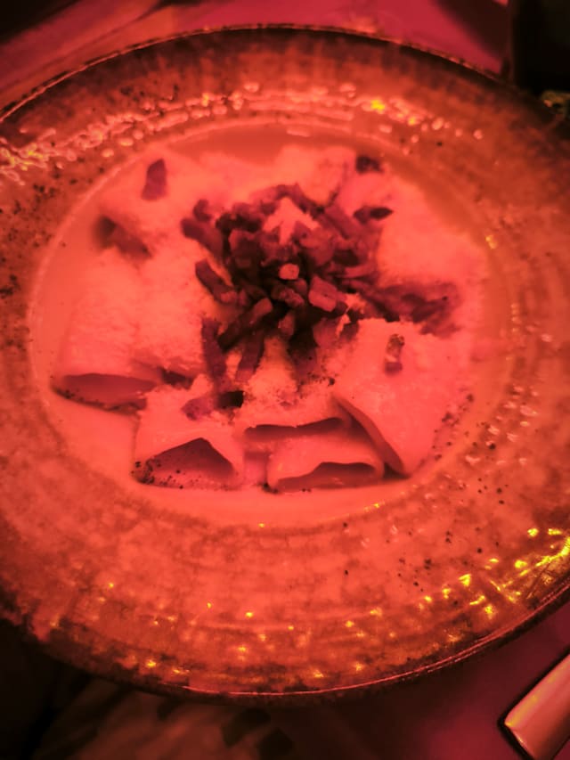 7/10Really cute place, but the tables are too small. It’s already full (salt, pepper, oil, flower decor, glasses and cutlery) before the food arrives so definitely uncomfortably small. When the wine arrived I asked the sommelier for a chair/stool for my small bag but he didn’t even respond. The order bell in the bar was right next to my boyfriend’s ear and it was loud so not the best position. The food and wine was great but I ordered a pasta with truffle but got truffle oil, so I notified the waiter and they took off the extra cost of the truffle which I appreciated. I would definitely recommend the place but don’t order too many starters or the big tagliere because it’s no space for it😅