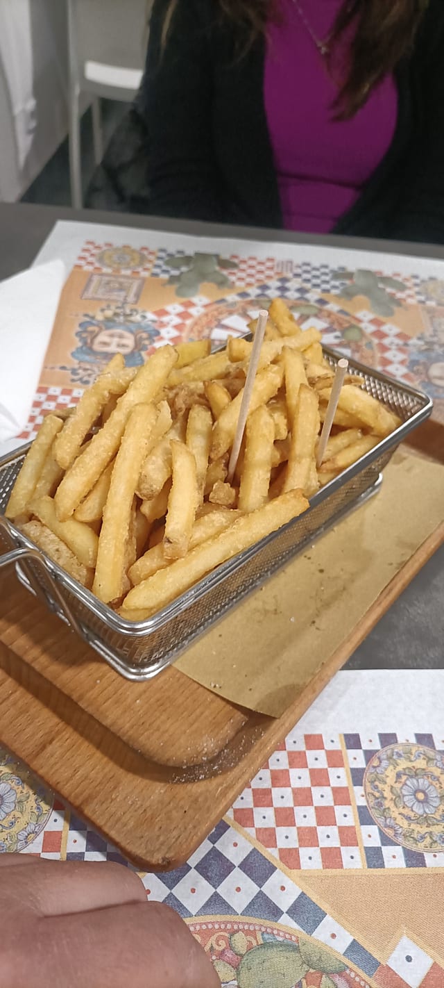 Con bacon croccante, provola alla piastra, insalata ,patatine