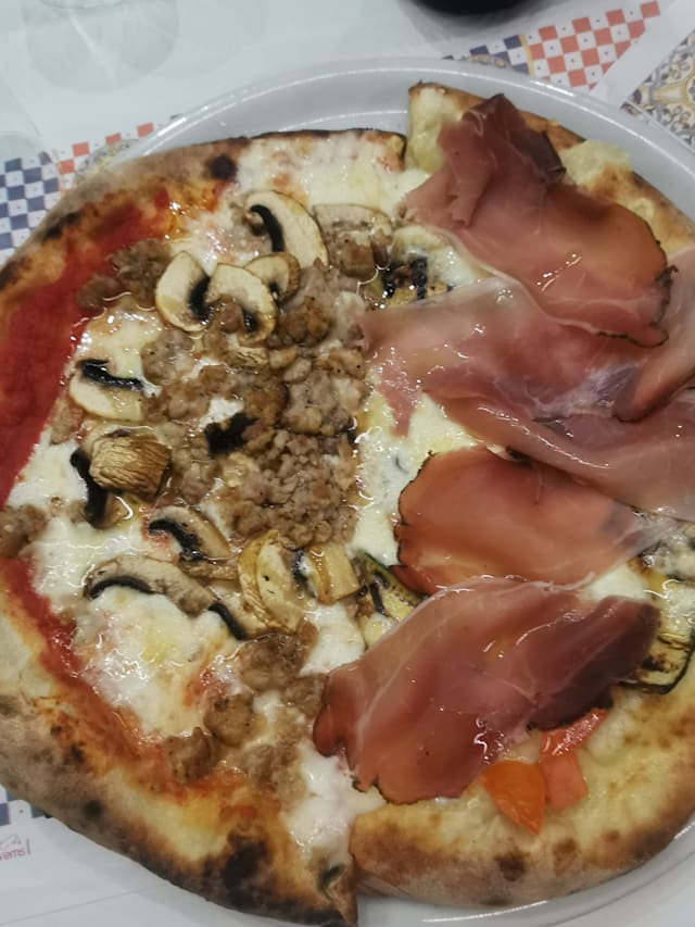 Mozzarella, porcini, salsiccia, pistacchio, granella di pistacchio