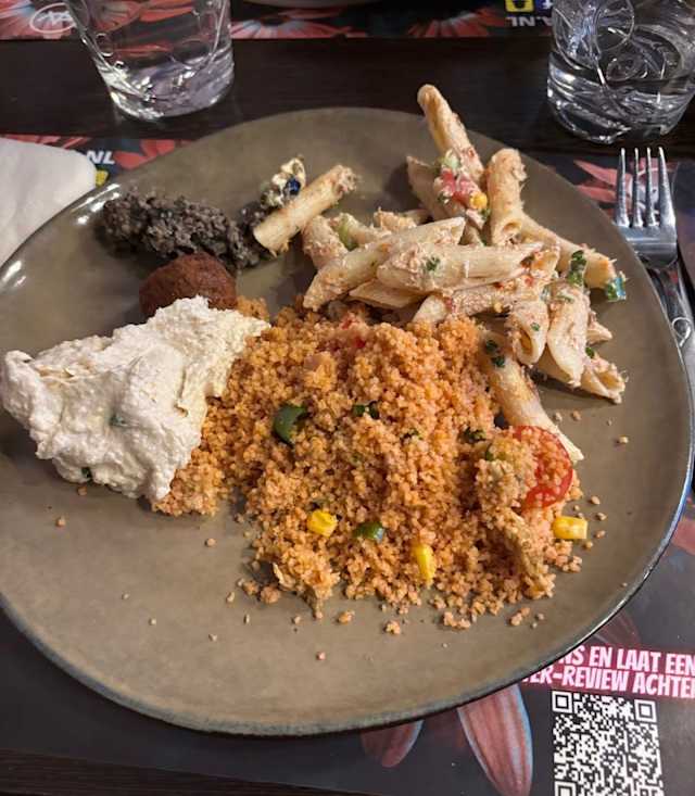 - Salade met couscous, kip, paprika, uien en een heerlijke kruidenmix