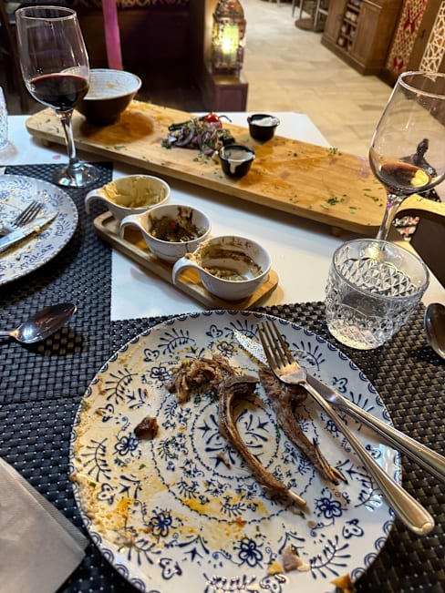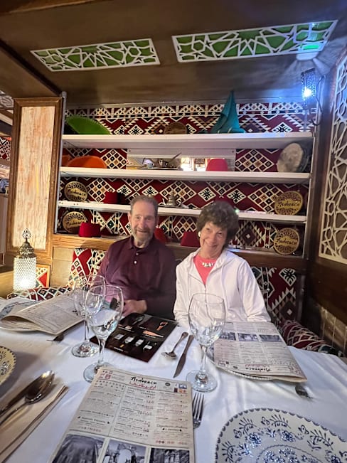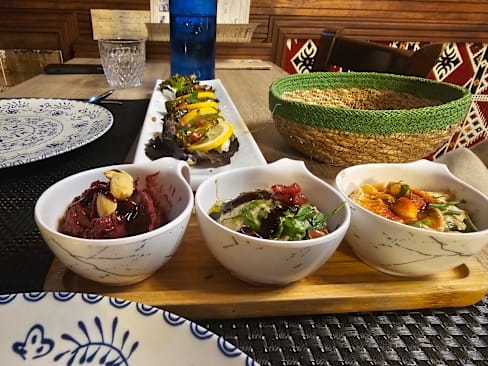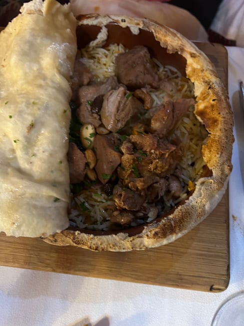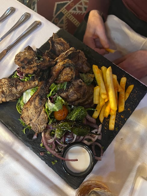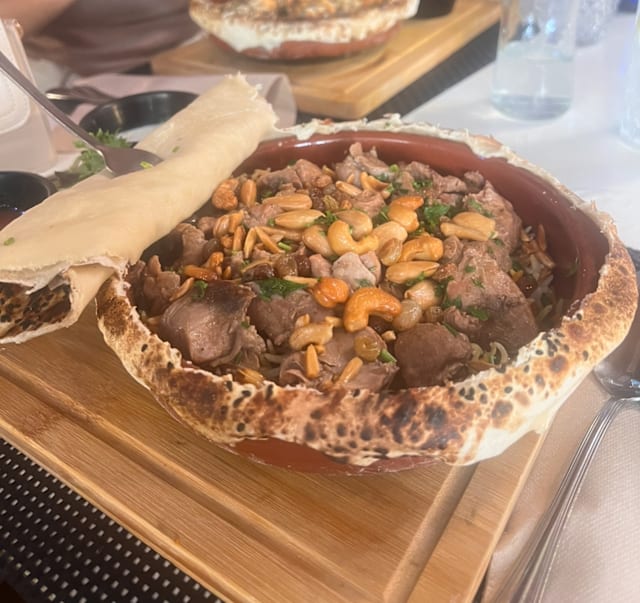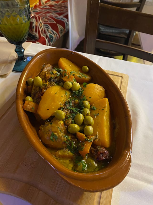 7.5/10Welcome from staff was friendly. We had booked online but the team did not appear to have a clear record of this. However, as the restaurant was not full, we were quickly seated. The menu is extensive and a little confusing. It was not clear on portion sizes and therefore we were unsure how much to order. We decided to order a mixed plate of starters. These arrived quickly and were pleasant but not outstanding. For example, the baba ganoush was slightly too acidic and the hummus a little dry. Main courses are large in size and unless you are feeling ravenous are too big to finish after a starter. The lamb tagine was tasty but could have been cooked for longer and slower so the meat would be tender and fall off the bone. I had a chicken dish with rice. Again it needed slower cooking and the chicken was a little dry. This was a good meal but not a great one. I think catering for one visit tourists may have made the restaurant more concerned with speed, and the quality has suffered.