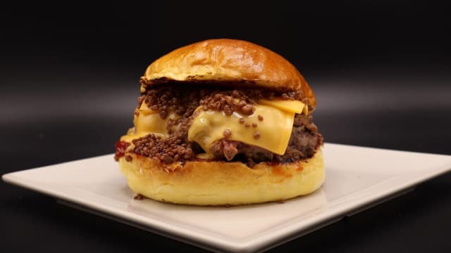 Doble carne smash con queso cheddar derretido, bacon y nubes gratinadas al punto justo, creando un contraste dulce y ahumado. Pura locura.