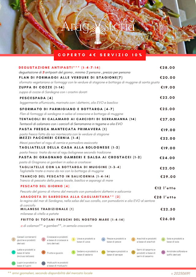 ItalianSardoSeafoodTraditional cuisineEuropeanLobsterSeafood platterBirthdayBookable terraceGood for a business lunchGood for familiesGood for groupsGreat viewOceanfrontOutdoor diningSeminarTraditionalWith friendsVegetarian dishesAmerican ExpressDog-FriendlyWheelchair Accessible