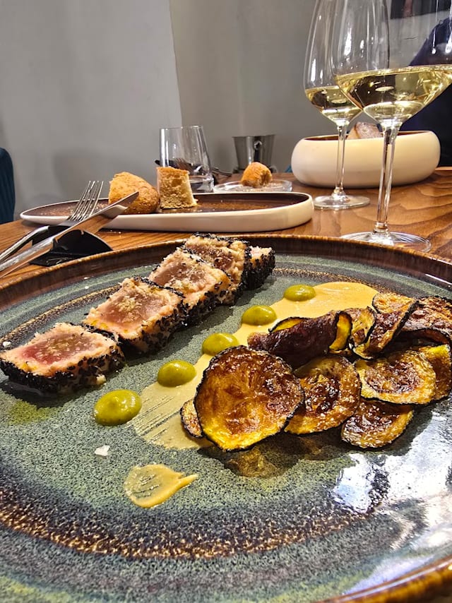 9.5/10We had a small sunday evening diner here after a big sunday lunch. The restaurant is pretty new and you can see that, all is perfect. We had some recommended glasses of wine and slected only a maincourse. Very good quality of foodcand service. It was a little quiete due to sunday evening, but all with all a good experience. Will come back when we are again in the area.