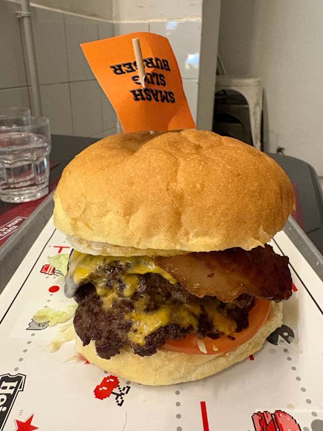 - Smash burger, cheddar, bacon, salsa burger, pane bun artigianale