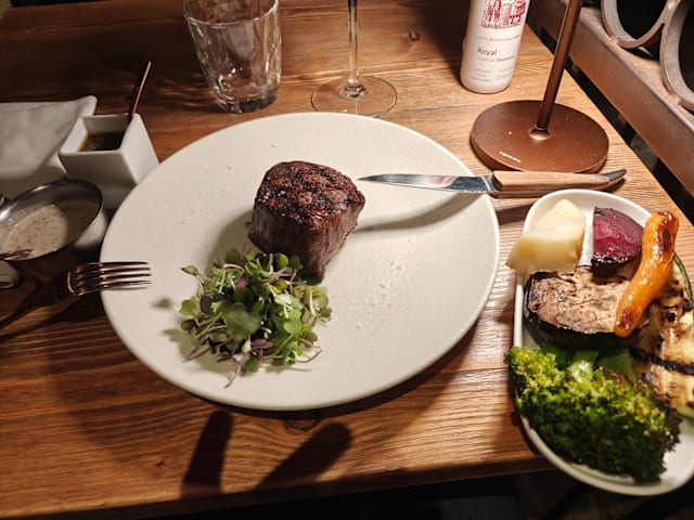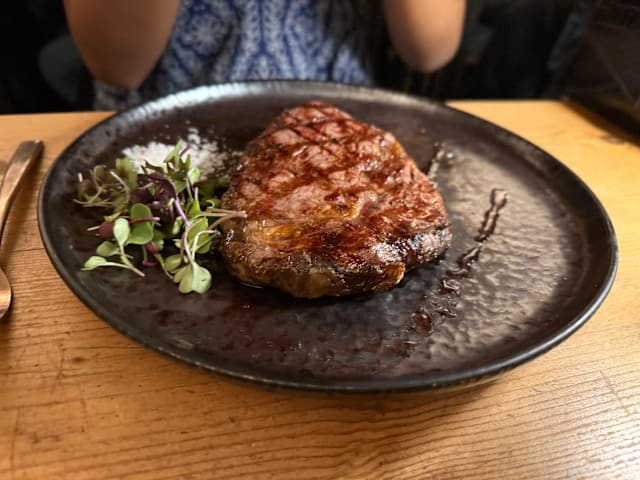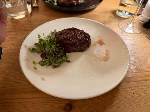 9.5/10Excellent steak (tenderloin and skirt) and lamb paired with a wonderful Crianza wine suggested by staff. Lovely atmosphere.