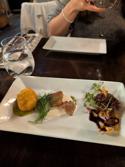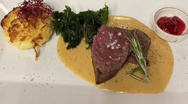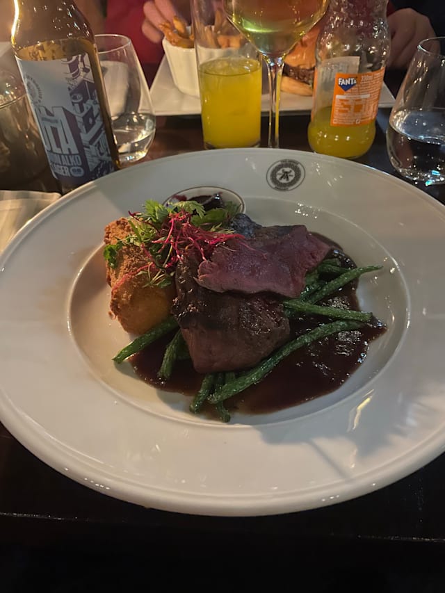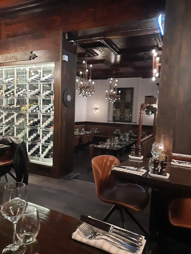 10/10Service was stellar, wine and whiskey menus were extensive. Romantic but unpretentious vibe. The entrees were delicious, especially the perfectly cooked and extremely tender reindeer steak. Was kind of surprised by the asparagus starter. It was one fat piece of white asparagus sliced in half drowning in a sauce that was more mayonnaise than hollandaise - expensive and forgettable. But there was a sprinkle of some sort of delicious sausage on it that saved it. Overall we’d definitely go back next time we’re in town.
