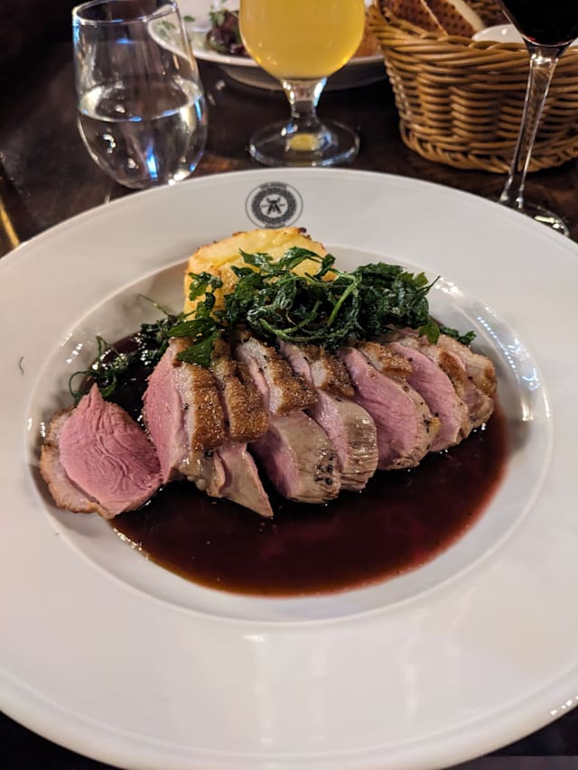 7/10The duck was excellent but there was a lack of green vegetables with nearly all the meals. It wasn't very good value for money and the wine was quite expensive. Great for people who like whiskey.