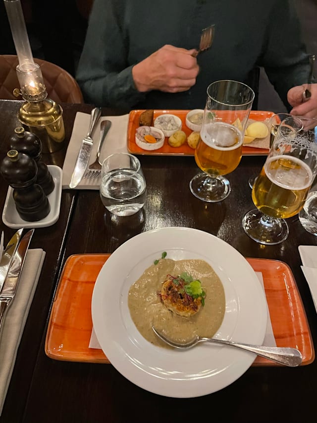 8/10Nice restaurant in Gamla stan, where we enjoyed two different starters (Swedish herring and Toast Skagen) and the very delicious game meatballs.