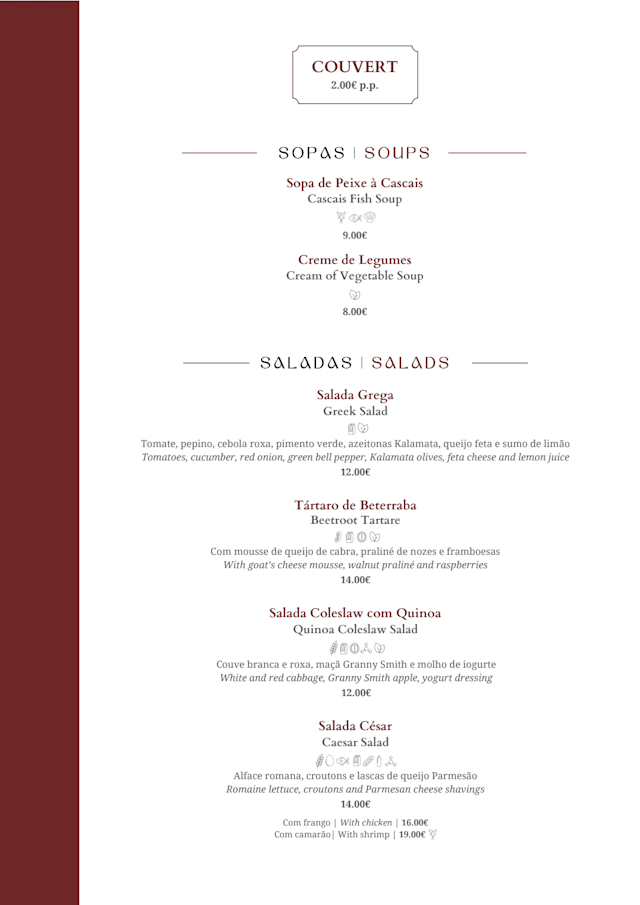A pleasant change from the ‘normal’ restaurants in cascais…great service, good food, quiet ambiance, lovely bar area, a lovely meal with fab friends