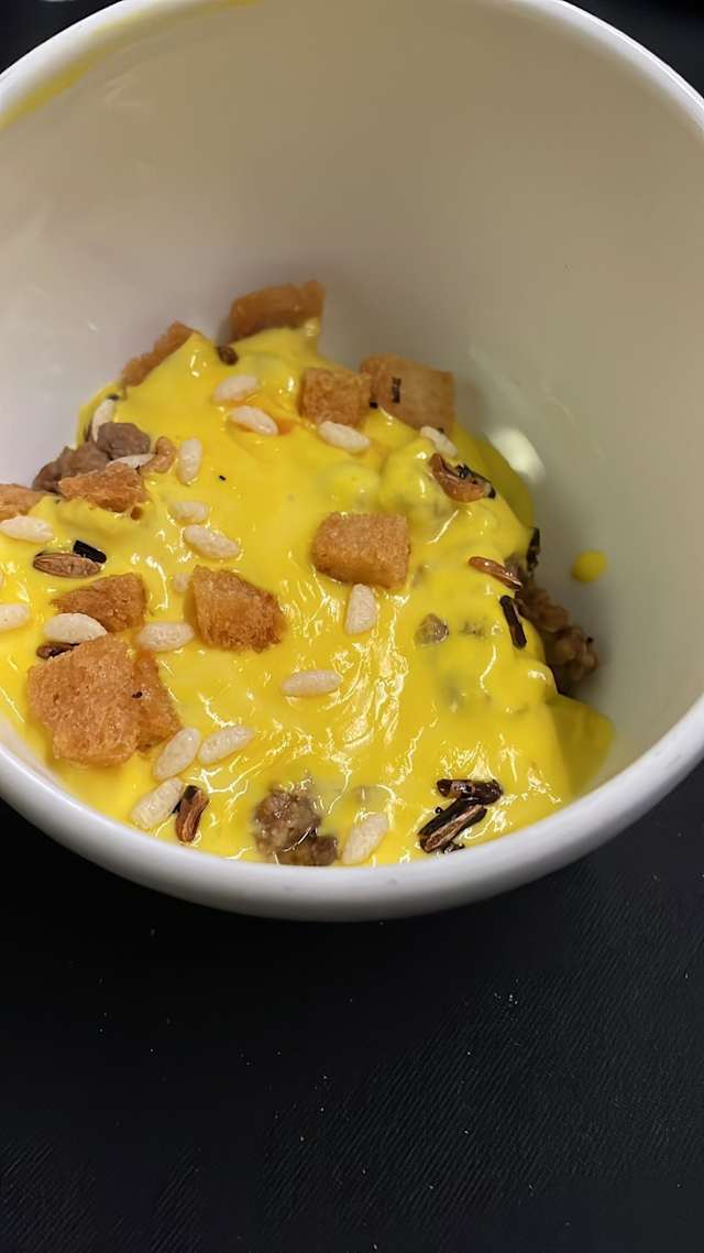 - Ragù bianco, salsa allo zafferano, crouton riso nero selvatico soffiato