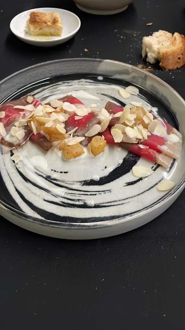 - Cecina di angus di miguel vergara, stracciata di bufala, pomodorino secco e noci di macadamia