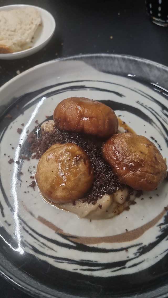 - Nappato al burro , salsa al topinambur, demiglace di vitello e crumble di cacao e pepe