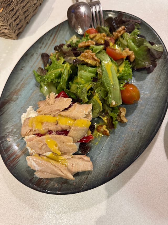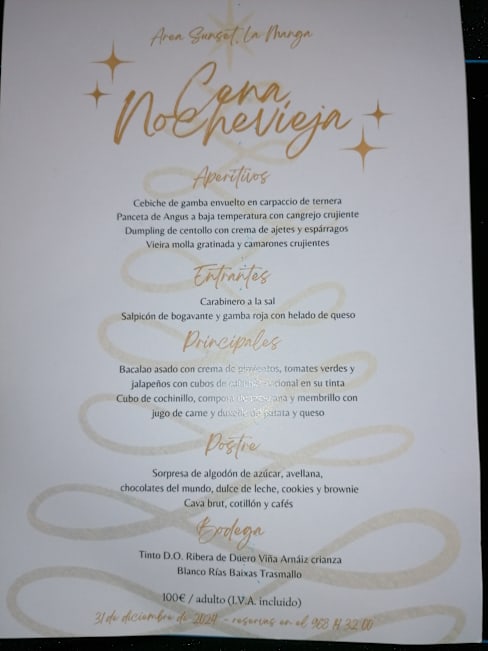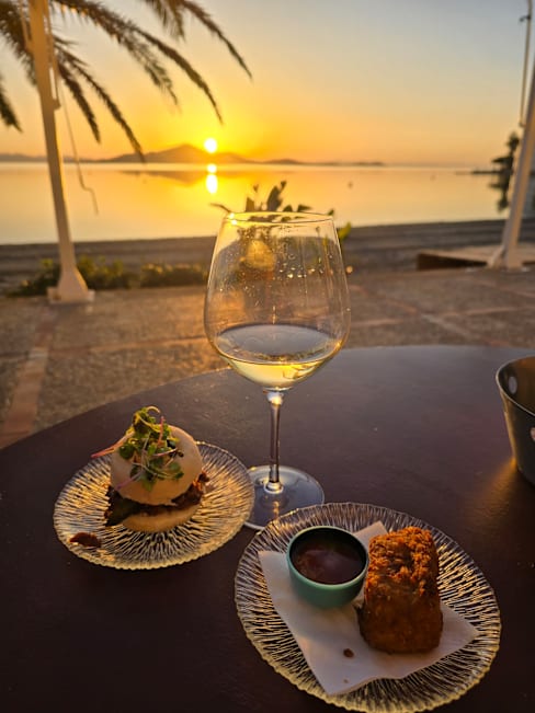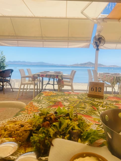 7/10The setting was beautiful right on sea. Definitely recommend the arena salad was amazing but a little disappointed with solomillo meal lacked seasoning and meat a bit tough . Brownie desert amazing and others had chicken ribs and pork all very good. Worth a try even if just for location. 30€ ph