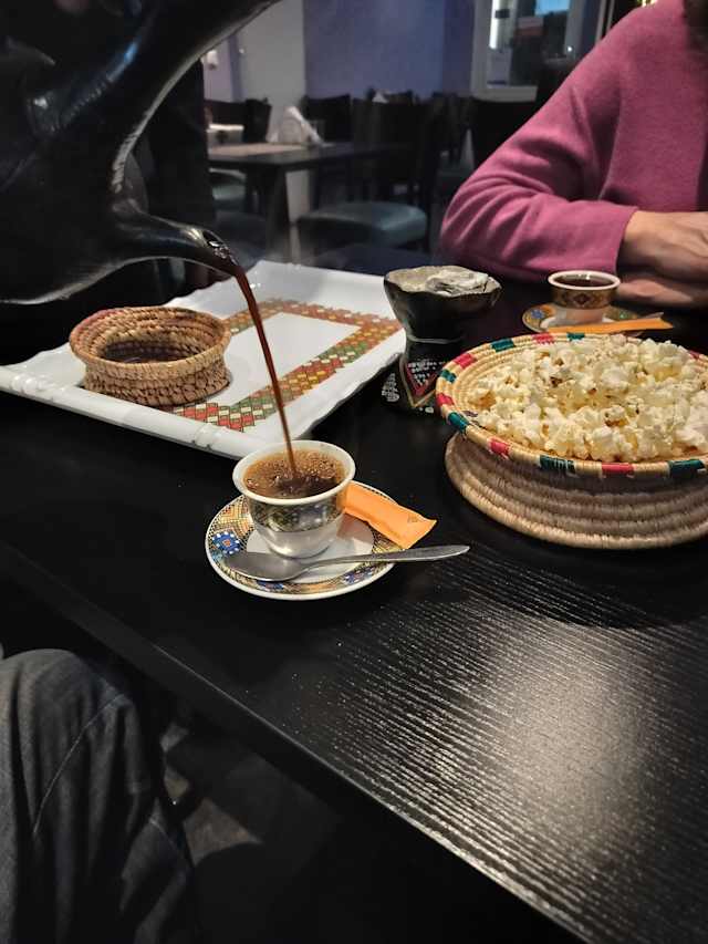 - (pittige kipstoofpot gekookt met berbere kruiden, uien, knoflook en gember; geserveerd in een traditionele kleipot met een hardgekookt ei)