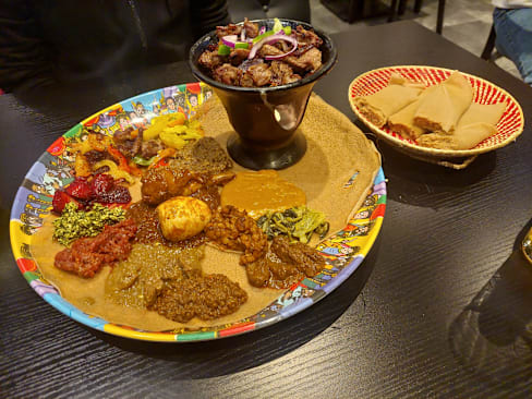 9.5/10Very good Ethiopian restaurant with plenty of classics. All the dishes are served with injera and can order extra for an extra cost. This is something I found different than other Ethiopian restaurants where extra injera was given for free. The food itself is extremely flavorful. You need to eat with your hands ofcourse!