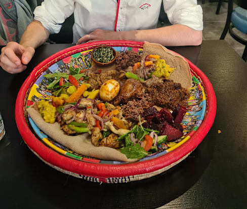 10/10Super tasty Ethiopian food. As authentic as eating it in Ethiopia itself. Great service too!