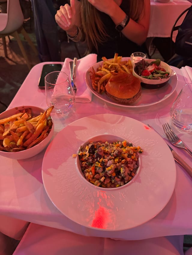 4/10We came to this restaurant based on the very high score, but I have been living in Aix for many years and I suspected that this could be actually a touristic restaurant. The service was nice and a part of the food was decent , I am talking about the fois gras. I had eggs as a starter with mayonnaise and truffles which were served warm , personally I would recommend this to be served cold . The tartare de boeuf was decent. The biggest dissapintment was spaghetti with gambas. These were cooked in a very heavy tinned tomato sauce that gave a bad taste , the serious issue was that one gambas was overcooked and one was totally raw , when I opened it the raw juice invaded the pasta. I am very sorry that I did not return the dish in that moment . I have mentioned my dislike to the waiters and there was a formal apology. Just now I read the negative reviews regarding the food of this restaurant . In conclusion I can not recommend this restaurant due to the high prices and non quality food