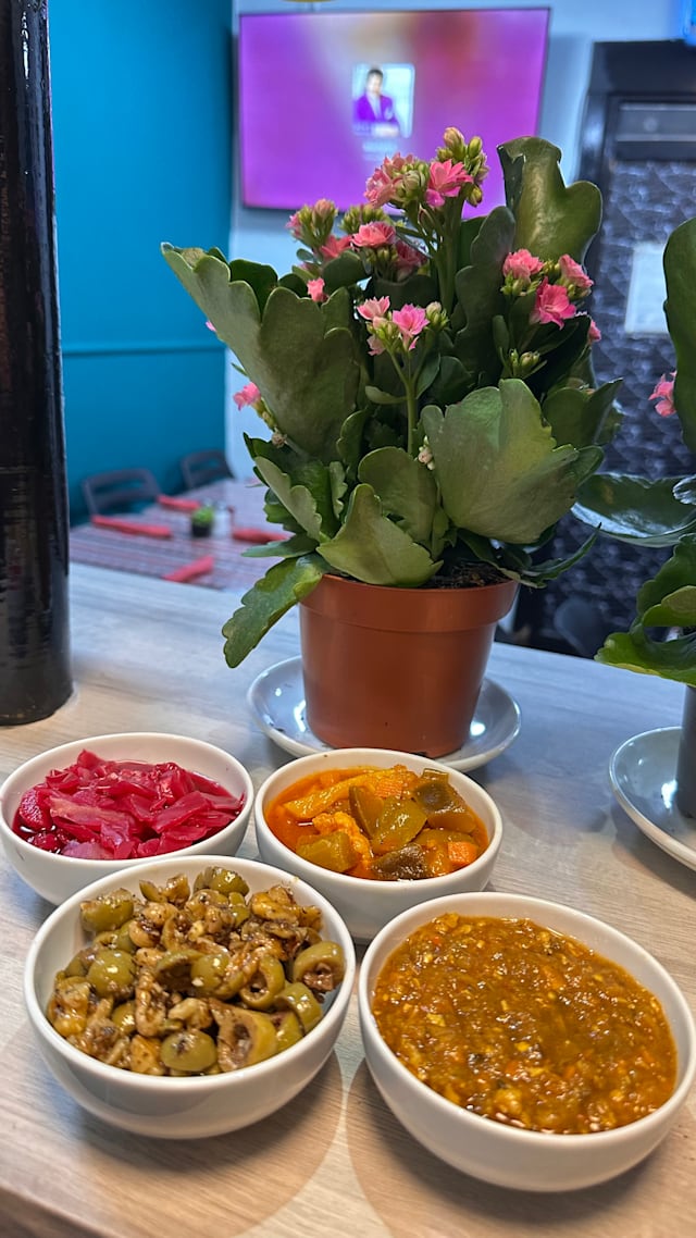 Olive marinate in salsa di melograna noci aglio e verdure persiane